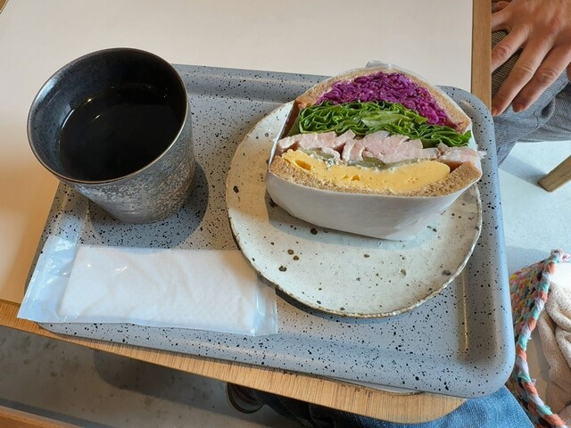 どこか他のお洒落なサンドイッチのお店では、具材たっぷりの一枚分を出されるので