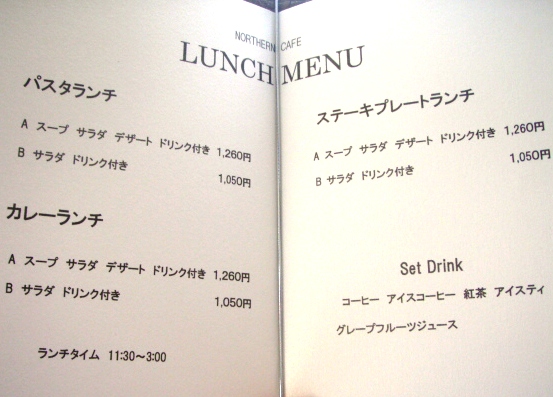 ランチメニューはパスタ・カレー・ステーキの3種類