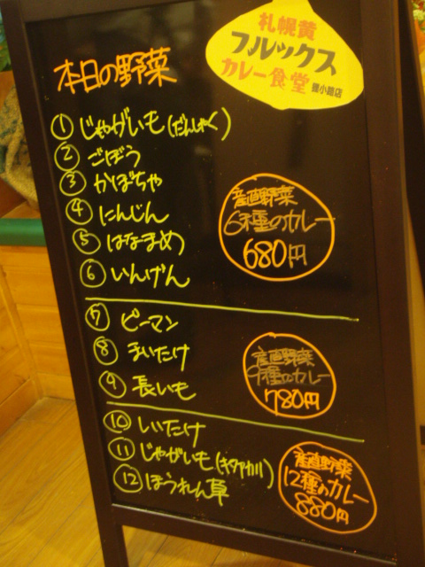 料金はシンプル 野菜6種のカレー 680円 9種のカレー 780円 12種のカレー 880円