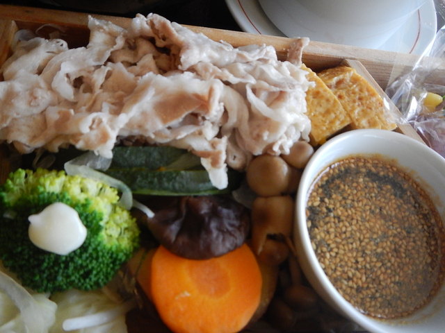 同行者の豚せいろ蒸しセットもどことなくヘルシーで素敵