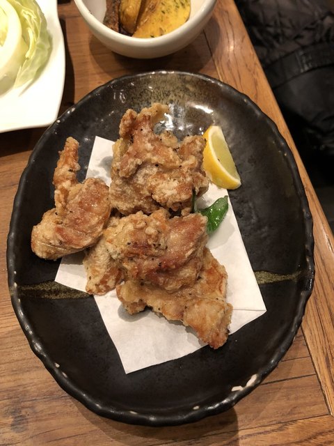 「若鶏の唐揚げ」は強烈な生姜醤油の香りプンプンの物は嫌いなのでちょっと挑戦でしたが、期待を裏切らない味わいと、肉は歯ごたえ抜群の一品でした。