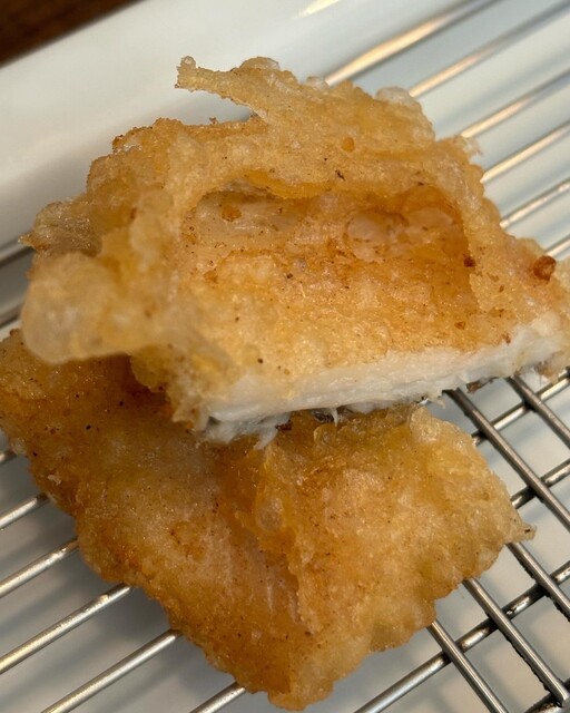 主人は、あさくらの主人が豚肉と親友であり、二橋の主人が麺と大の仲良しであるのと同じように、「揚げ油と親友」であると確信しました。しかも気難しいところはなく気さくな方なので、食事がすごく楽しいです。「アブラの中に30秒ぐらい手突っ込んでも平気なのでは?」と振ると「たぶん、30秒なら衣つければイケルかもぉ~」というノリで返してくれます。(笑)