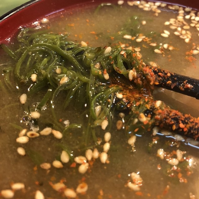 いつものように、めかぶのお味噌汁をオーダーしようとすると・・・今日はめかぶ・・・品切れです!と先制攻撃を受けてしまった。『じゃあ、なにがいい?』と聞くと『しじみ汁』とのことで、それに従ってみた。嫌と言うほど大量のシジミがぶち込まれたしじみ汁が登場した。