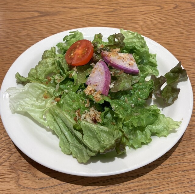 お野菜の種類こそ少ないですが、セットのサラダのボリュームとしては申し分なし♪揚げたパン粉的なものも食感のアクセントとなり美味しかったです。