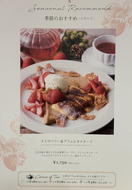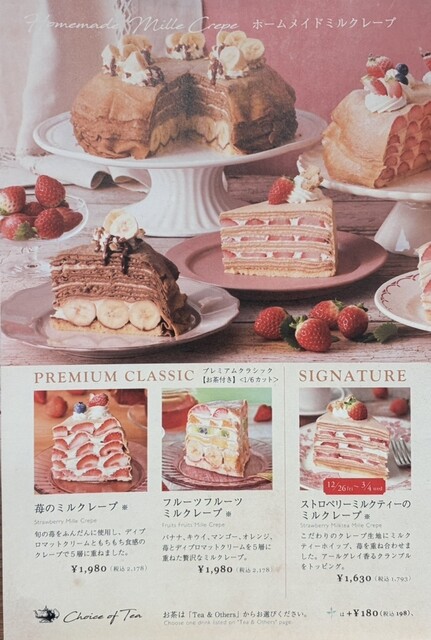 デザートのストロベリーミルクティーのミルクレープ。こちらは+¥180かかりますが、私はイチゴ好きなのでコチラを迷わずチョイスw