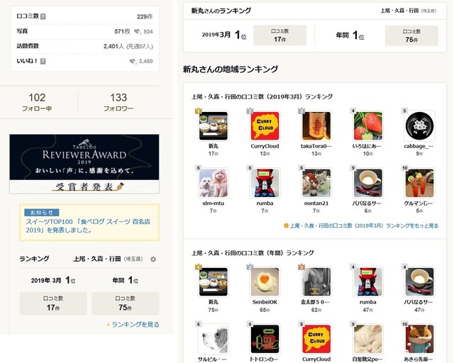 上尾-久喜ー行田区域 1位取得 2019年3月 (2019/03/31)