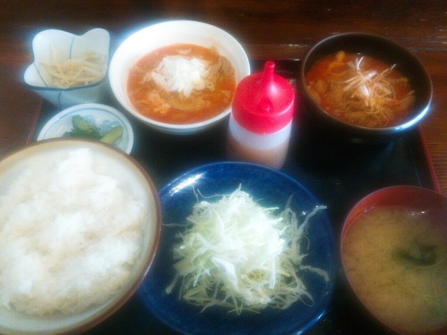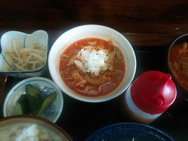 辛い、優しい&ガツン!な、もつ煮定食です。