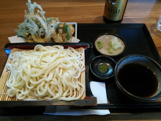 いやぁ、枝豆とビールが合うのは当然だけど、天ぷらとビール、うどんとビール、これがまたうまいですよ。