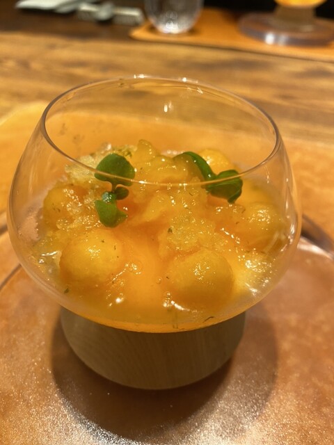 デザート前の拘りスープが、またカラダが喜ぶ野菜の皮などを丁寧に干して旨味甘味を上手くスープ仕立てに。
