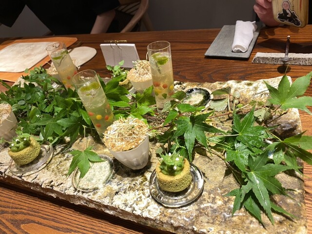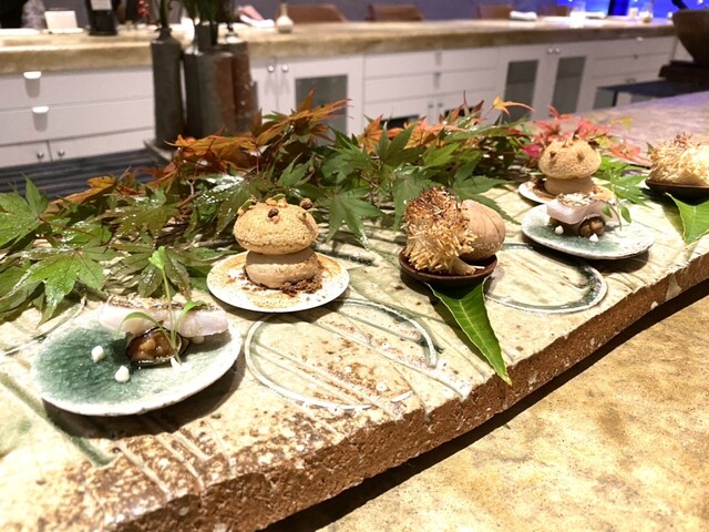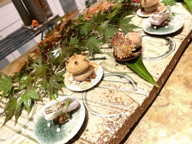前菜から圧巻、ジブリの森に迷い込んだかの様な可愛くも素敵な世界が広がるプレート、進んでいくお料理は細やかな表現繊細なデザインはうっとりする、まるで絵画のよう。