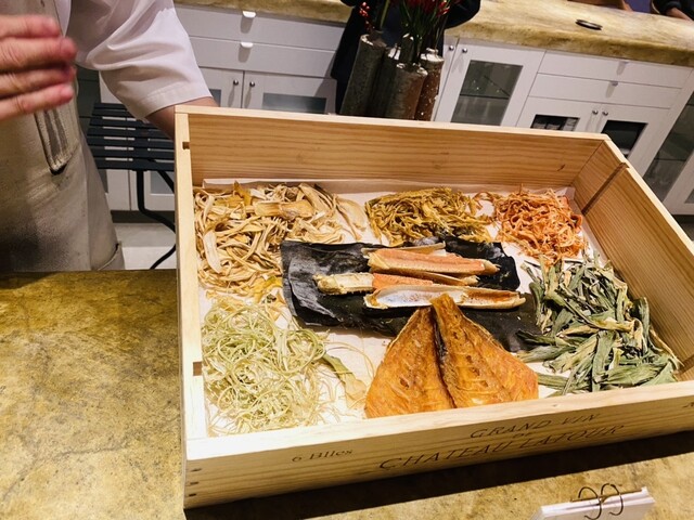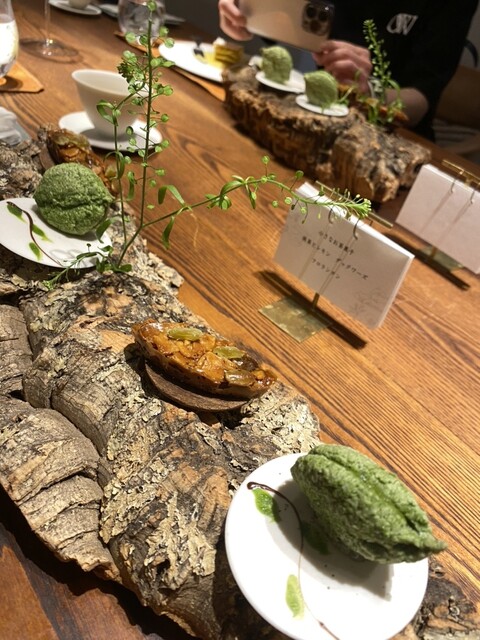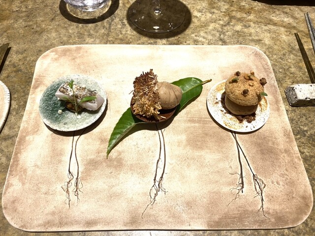 プレートの上の根っこも、地球、土、自然の恵みなんかを想像させる演出が素晴らしい。