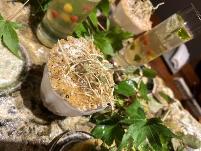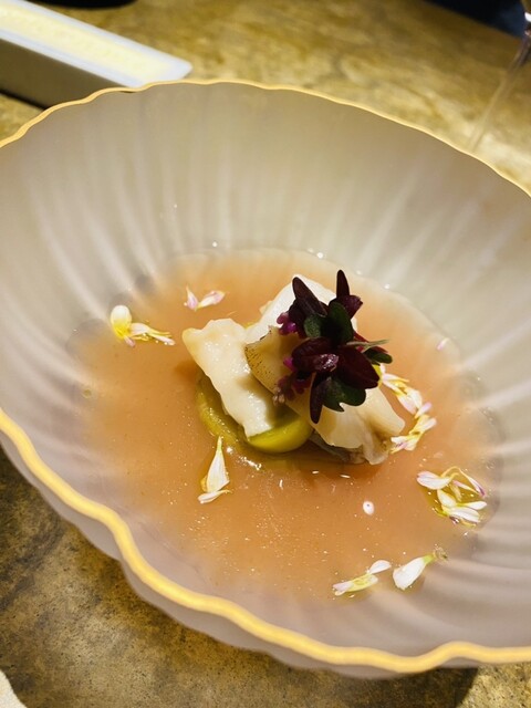 お料理一品一品食材を愛し、視覚、食感、味覚細やかな攻め方を提供。コースを彩るワインや台湾茶が満足感に導かれるまま楽しい食事は終了。