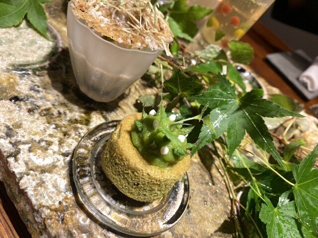 豆の可能性ってタイトルの一皿も、鮮やかな映えと拘りの食材使いに感心!
