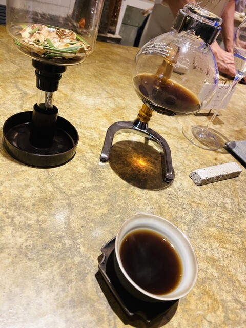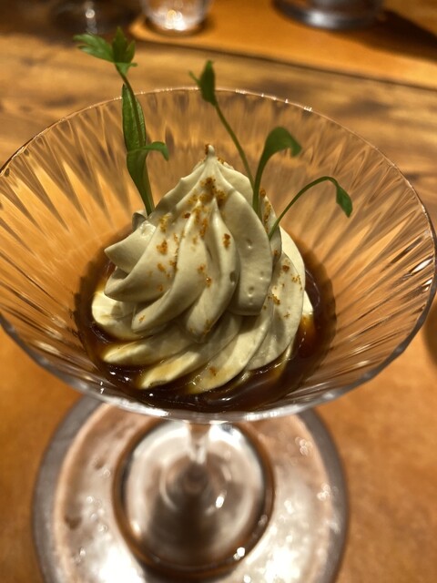 いきなりコーヒーかと思ったら、色んな茸の出汁のスープは香りが堪らない。黒色だからホンマ間違えるからギャップが良いし、お味が美味しい。