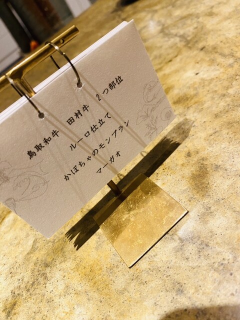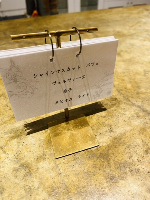 メニューはテーブルの上に、小さく可愛らしいスタンド型のサービスさんがめくってくださるお品書き。