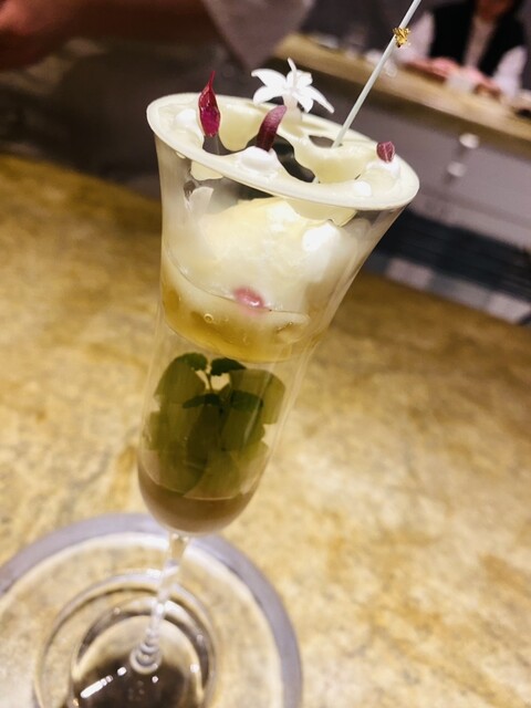 いよいよデザートは、なんとも見事な見た目も美しいシャインマスカットのパフェカクテル