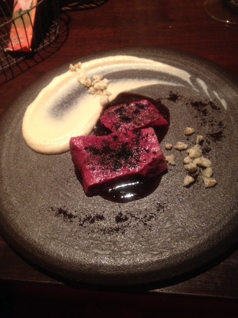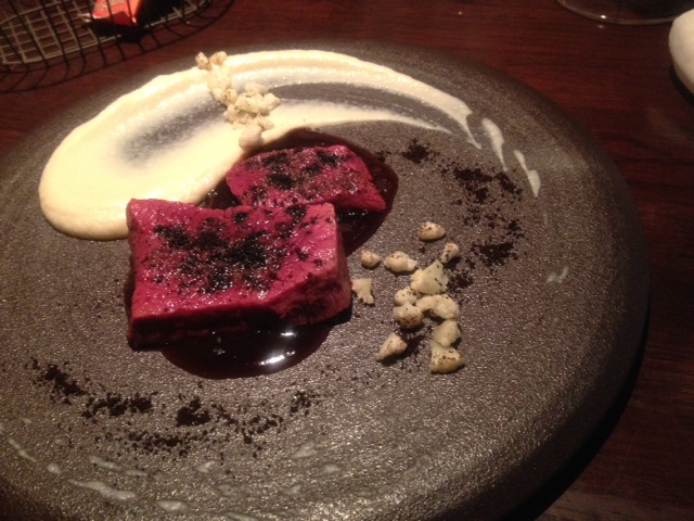 チーズは、イギリスので、かなりまろやかだがコクあり、ビーツで色付けしたモノらしい!ご機嫌な一品。