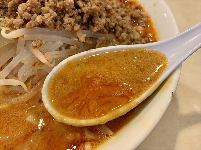 担々麺特有のスープのぬるさはありますが、辛口は結構な辛さなのですが温度が低めなので幾分マイルドに感じます。また旨味バリアがすごいので、それも辛さを穏やかに感じさせてくれます。感じさせてくれるだけで後から押し寄せますが。