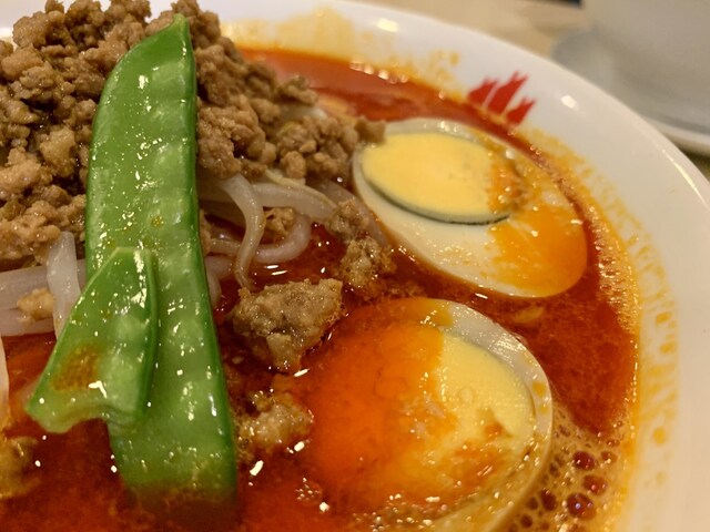 赤いスープに対する彩り担当でしょうか。インゲン入り。玉子は100円で追加できて八角のような風味があります。固茹仕様。