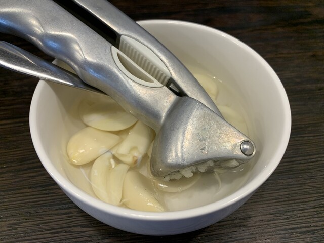 大蒜自己クラッシュ方式も健在です。このあと会社に行かなければいけないので自重しました。もうマスクもしてないですし。