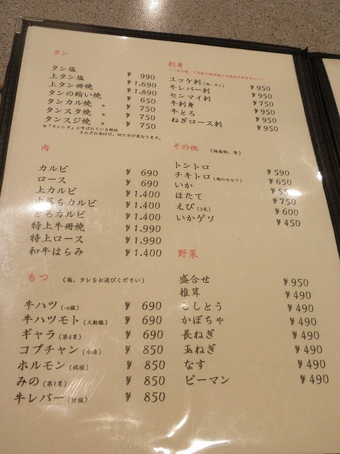 なので全然高くありません。普通の焼肉屋さんくらいの値段です。