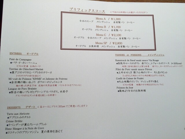 以前はA~D、4つのコースがありましたが、1枚のメニューでメインを1種にする選択も可ということでした。