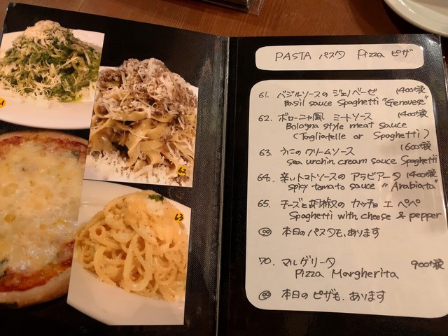 料理のメニュー。15回目なのでメニューを見なくてもオーダーできます。