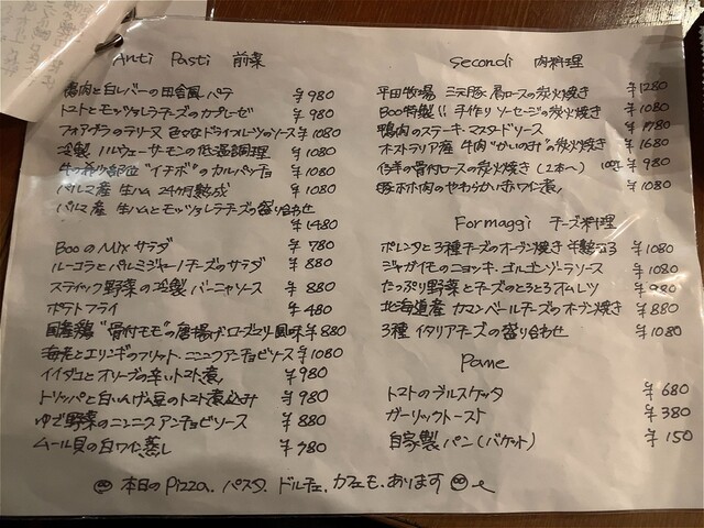 本日のピザをオーダー。ブーのピザはスナック感覚で頂けます。