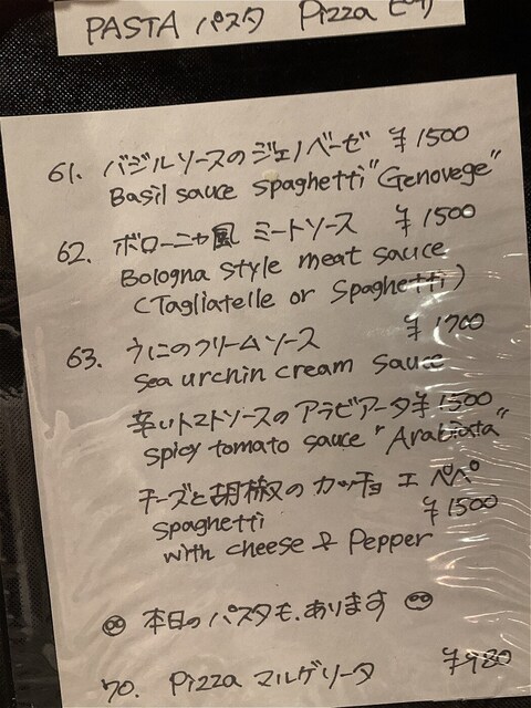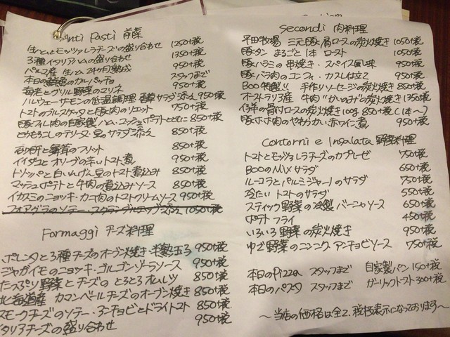 この日の黒板メニューです。