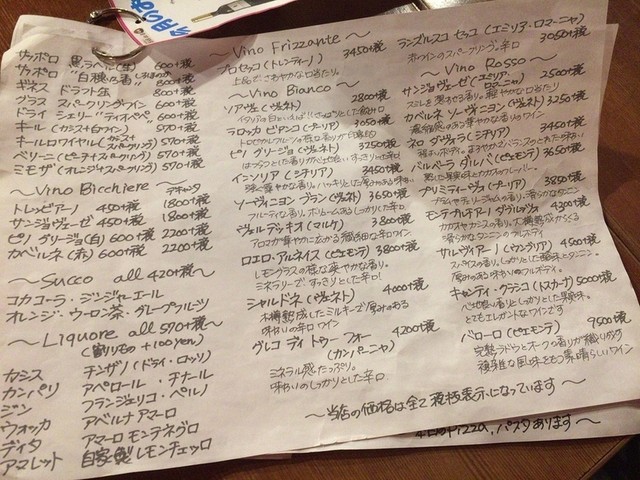 ワインリスト等は一番下に掲載しました。
