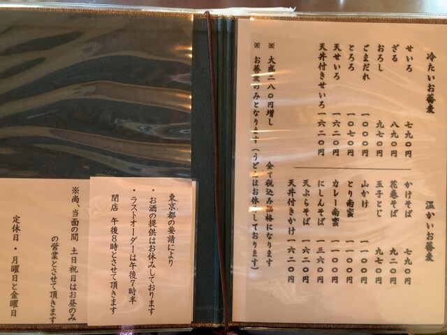 メニューにもコロナの影響が出ており、うどんと一品料理がお休みでした。