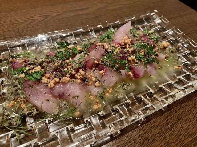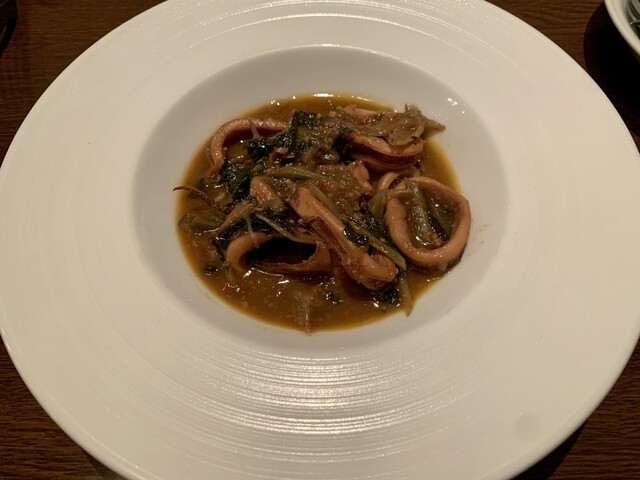 レモンビネガーとマスタードの酸味のあるソースと、鰯の脂がマリアージュ。水茄子も瑞々しくて。共に季節の味。