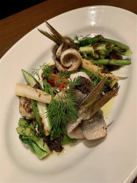 オーダー数が多すぎるということでハーフサイズにしてくださいました。酸味のあるソースと素材よしの野菜の共演です。