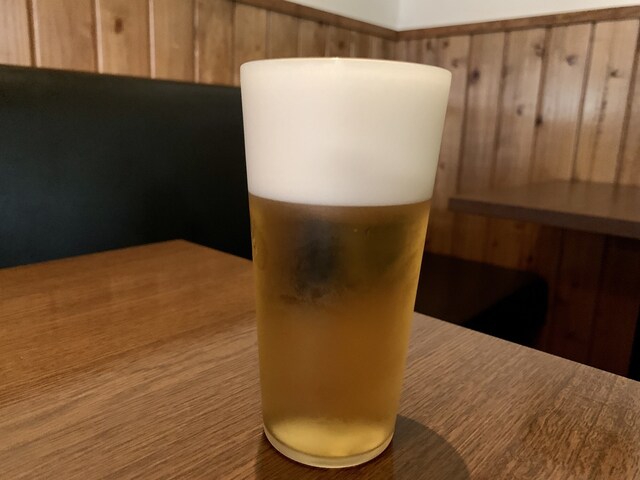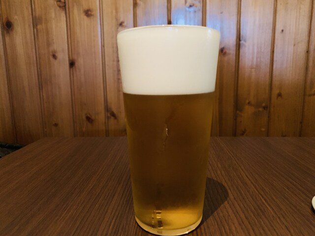 藤井さんが注いでくれるキメ細かい泡の最高に美味しいビール。黒ラベル。