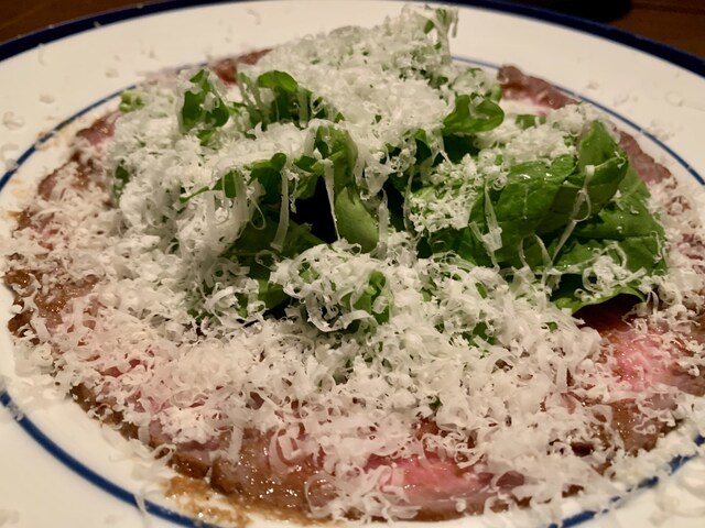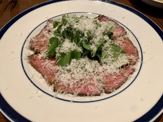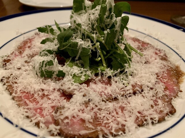 雪のように注がれたチーズとたっぷりのルッコラ。ルッコラは入店後配達されていました。いい苦味を醸し出してました。