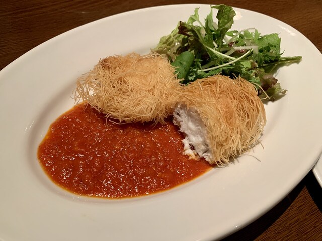 カリカリパリパリのカダイフをまとったスズキの身は一転ふっくらしてます。