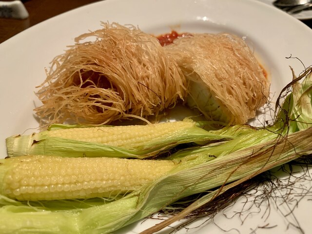 立派なヤングコーンを2本添えて。こちらもルッコラ同様届きたて。野性味があります。