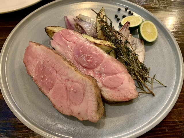 付け合せの野菜もすごく美味しい。茄子の瑞々しさと、玉葱の甘さ。双方味の濃さがすごい。生胡椒で時々刺激をプラス。