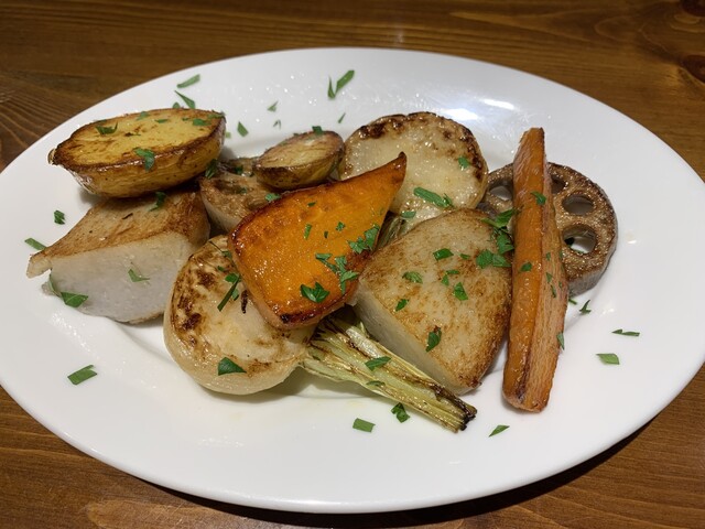 メインを肉にしたので、その付け合せと思って野菜のオーブン焼きをオーダーしたら凄まじい量の野菜がやってきました。