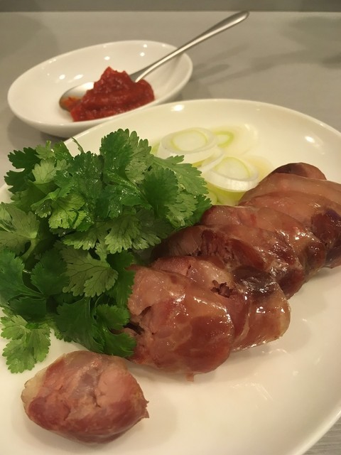 八角の香りがする腸詰めで、たっぷりのパクチーとで爽やかに頂きます。
