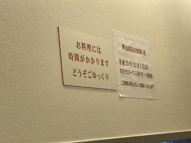 料理はコース一択になります。貼り紙も消えてしまいましたが変わっていなければ1人5,500円です。
