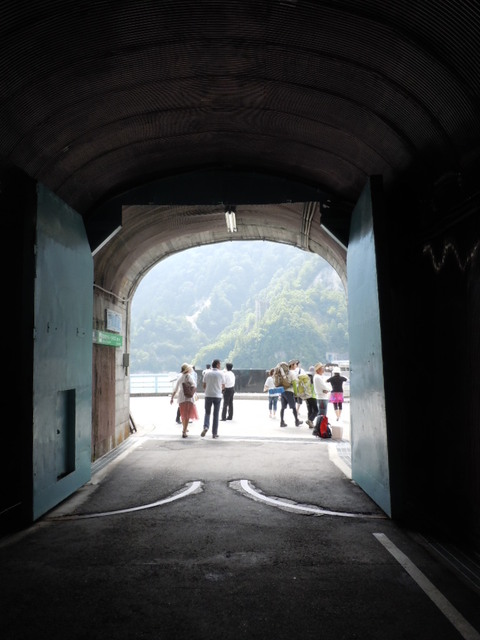 黒部ダム駅のトンネルくぐると