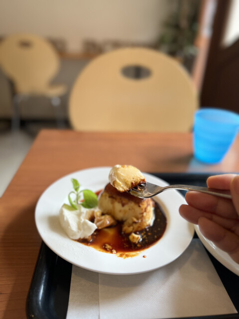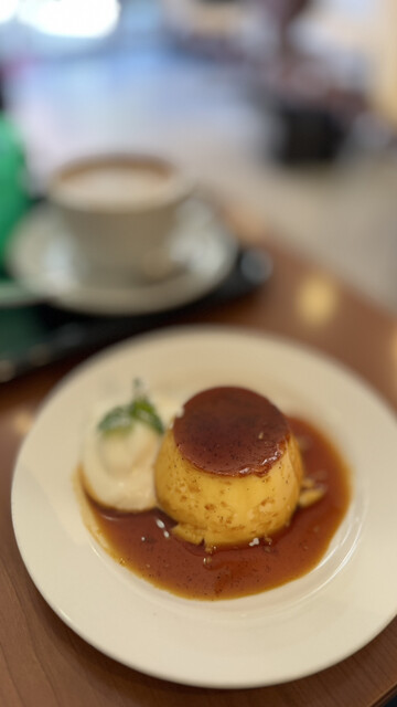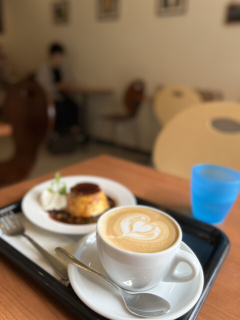 ラテは相変わらず美味しい。シフォンケーキもほんわか甘く好みだ。