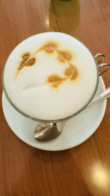 優しい店主と話しながらお代わりのカプチーノをお願いする。