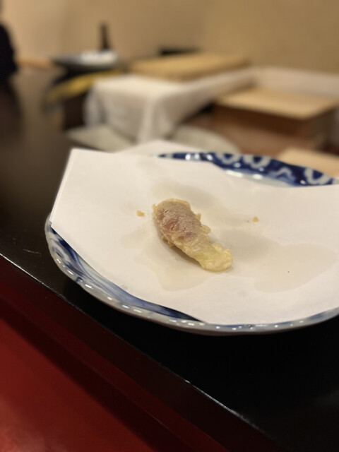 順序よく揚げられる。フィナーレの穴子も美味しくいただけた。この日は壱岐からやってきたようだ。