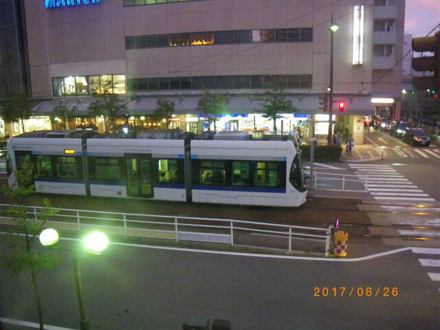 窓際の席からは、路面電車の走る景色が見られ、夕景とあいまって非常に良い雰囲気でした。