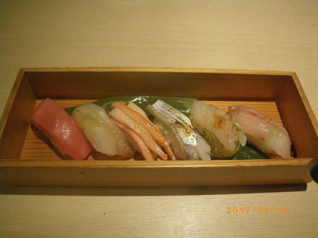 料理6品と上鮨5貫とデザートでしたが、おすすめメニューがあり、そこから希望の品もチョイスできます。コース料理とダブルものは、板長さんが気を利かして省いてくれますから、余分はありません。