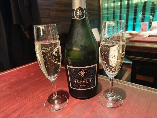 まずはスパークリングワインで喉を潤し、赤はボトルで注文。