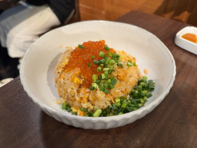 〆には、常連が口を揃えて薦める鮭イクラチャーハン。