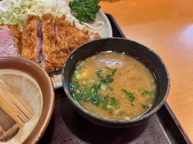 添えられるご飯と豚汁、小鉢はシンプルながら丁寧な仕上がりで、一膳としての満足度をさらに引き上げてくれる。